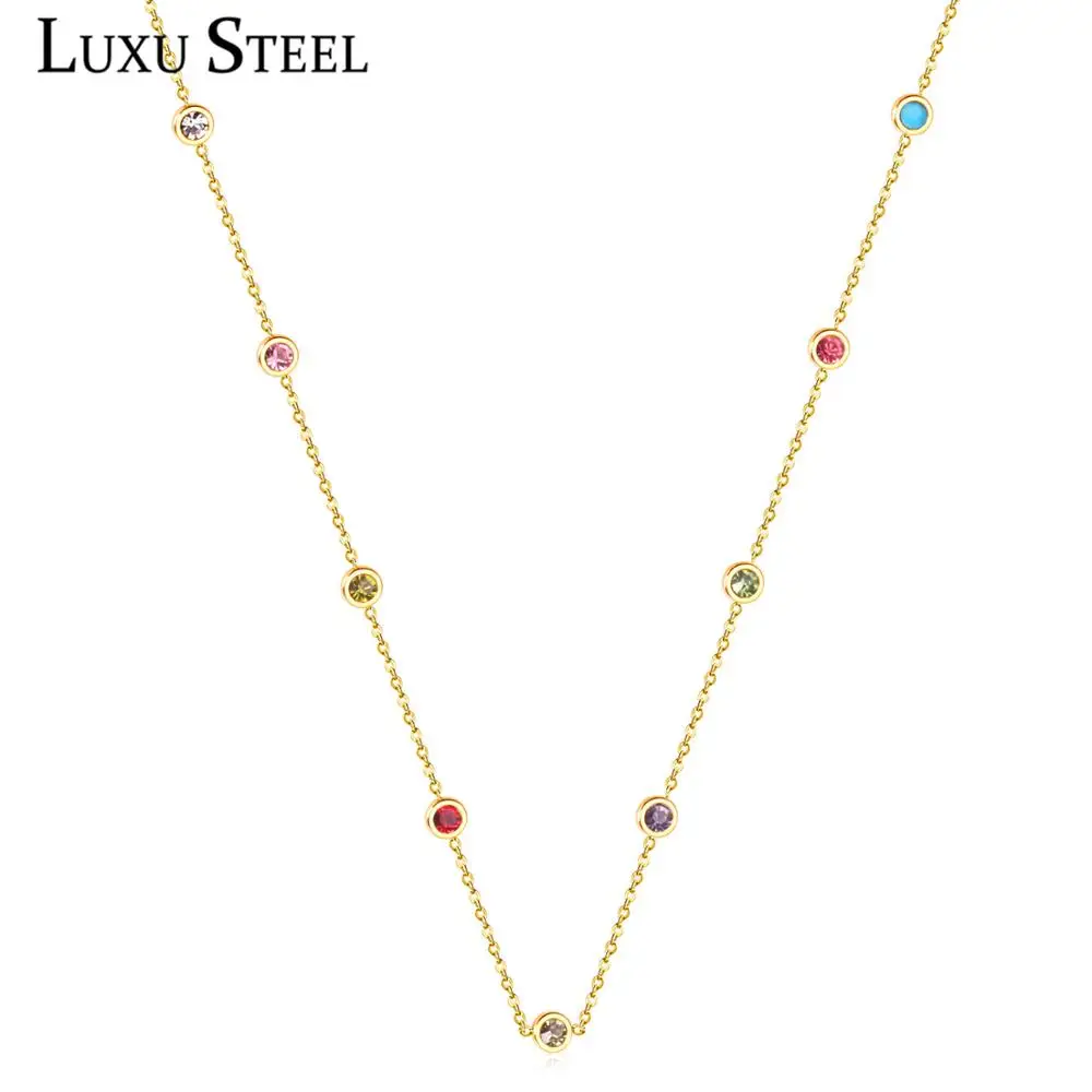 price cut LUXUSTEEL White/Colorful Round Cubic Zironia Pendant Necklaces 57cm+5cm Long Necklaces Extender Swe
