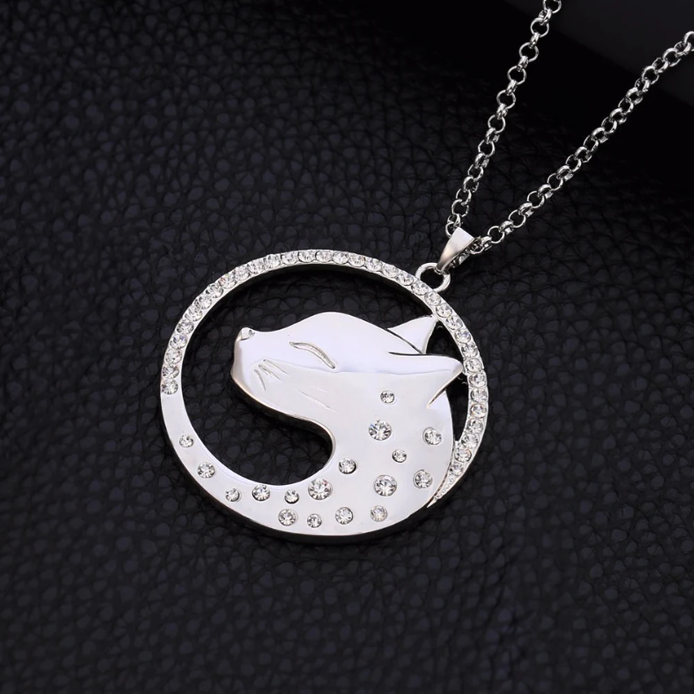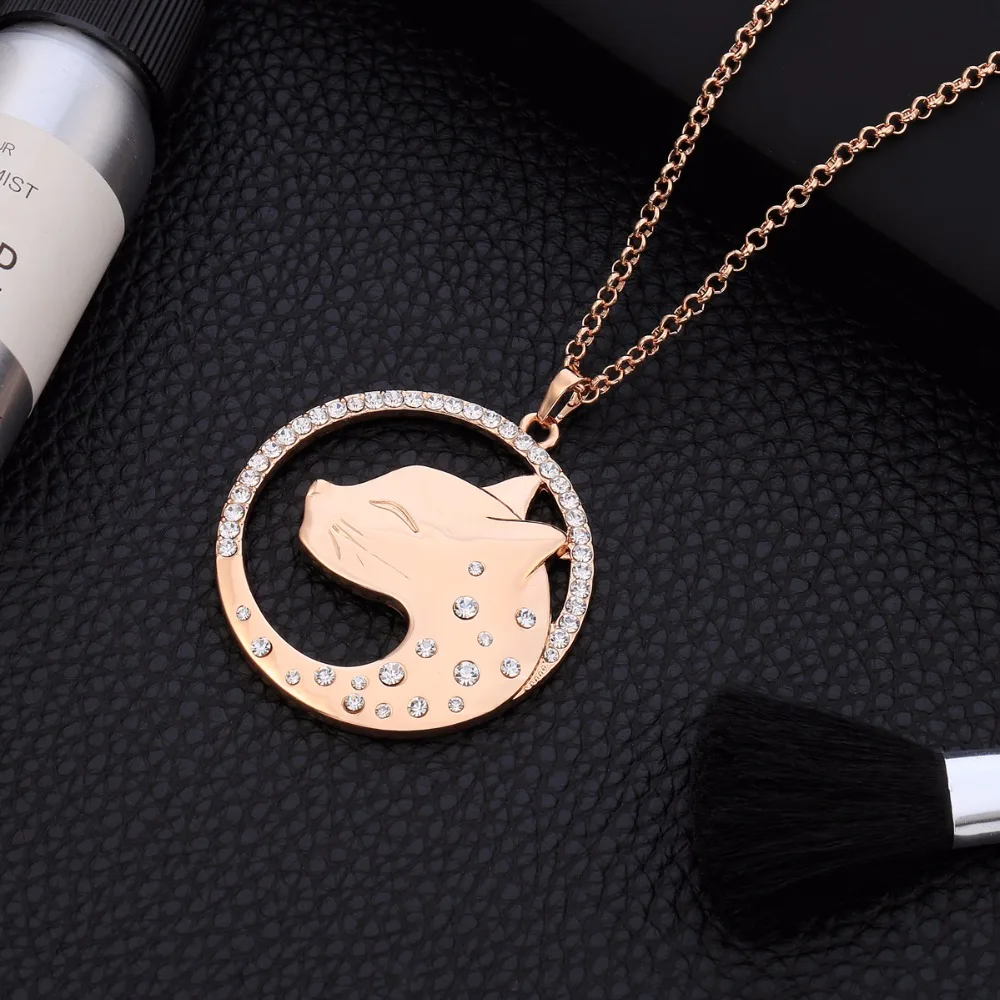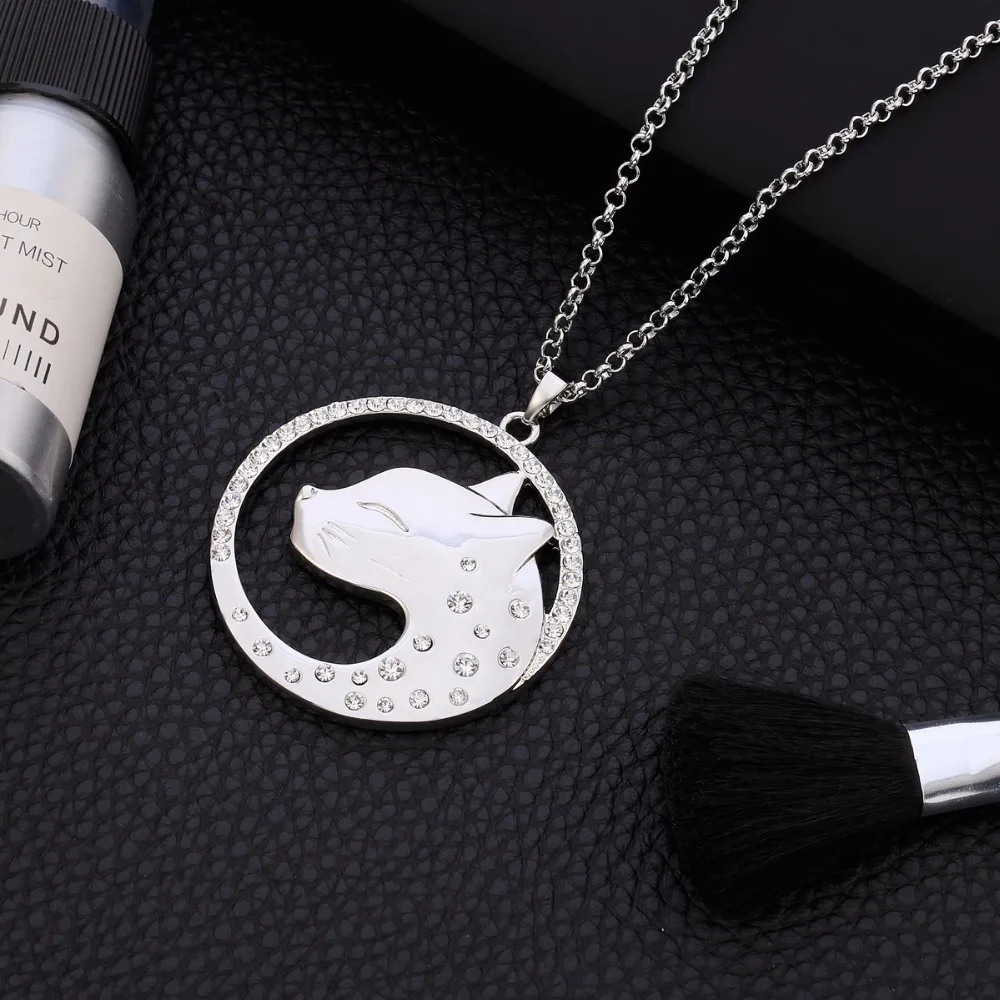 wonderful Cat Jewelry Big Leopard Pendants Necklaces Gold Silver Color Crystal Round Long Necklace For Women